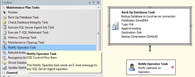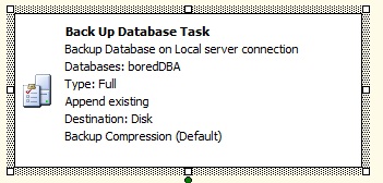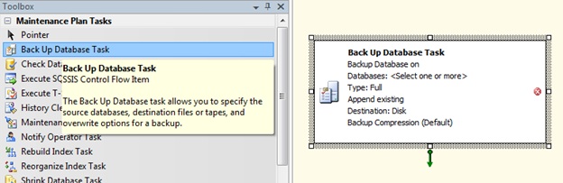 Next, grab a “Back Up Database Task” and drag it into the designer…