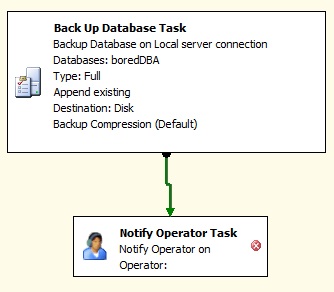 To ensure that each task is performed sequentially and not at the same time, drag and connect the green arrow from the Backup task to the Operator task: