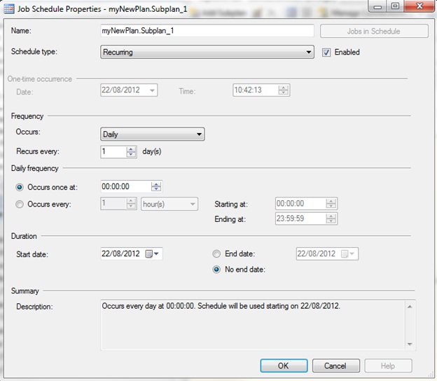 This will open up a common schedule screen and allow you to select Daily at midnight: