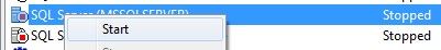 In here, locate the main SQL Server Service, right click, and select Properties: