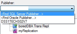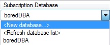 Connect to your Subscriber machine and it will appear in the Subscriber list along with a drop down allowing you to choose your subscription database…
