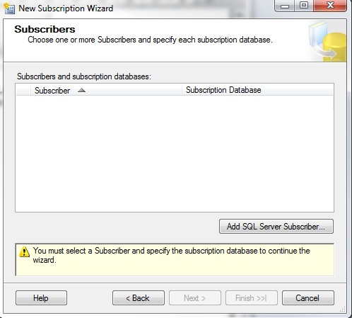 Note that you can add as many subscribers as you wish at this stage, just keep hitting the “Add SQL Server Subscriber…” button.
